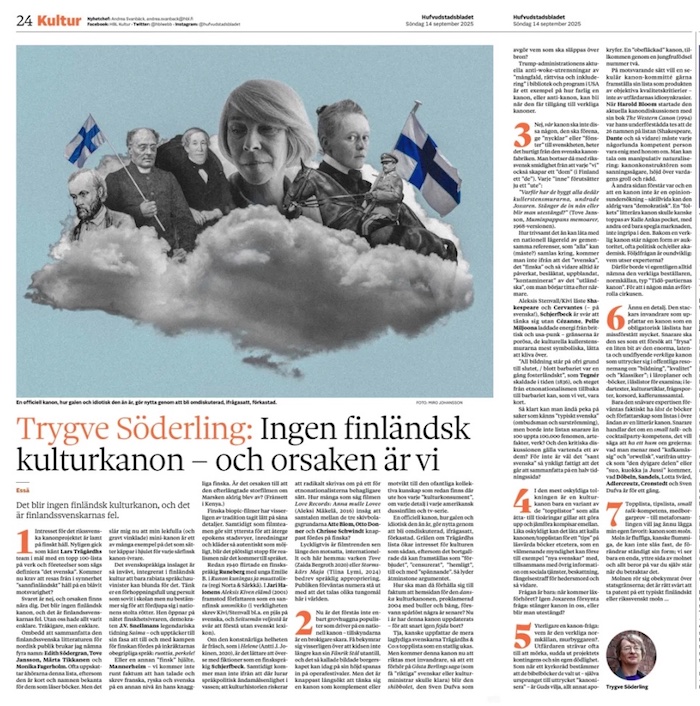 | "Krönika" i Hufvudstads-bladet 14.9.2025 |
